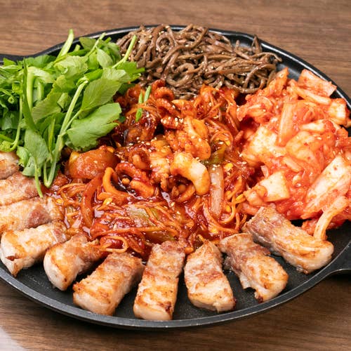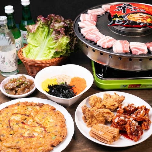 極厚カットの「蜂の巣サムギョプサル」は、カリッと焼き上がる表面とジューシーな中身が絶品で、一口ごとに笑みがこぼれます。
